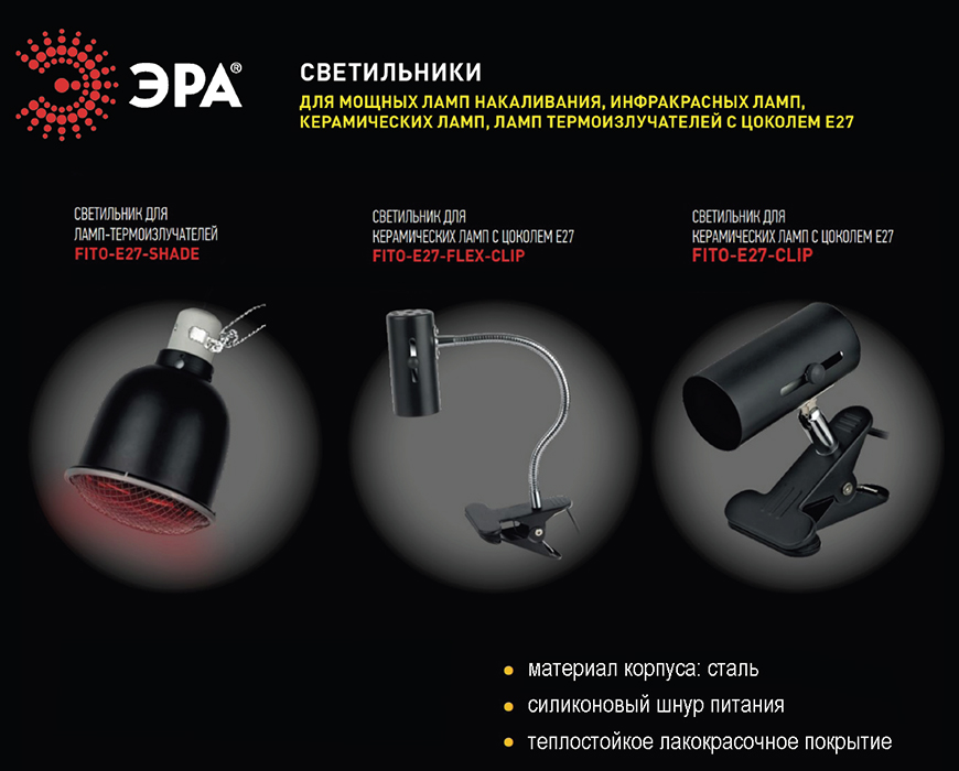 Керамическая инфракрасная нагревательная лампа "Эра" серии CeramiHeat является источником длинноволнового инфракрасного излучения.