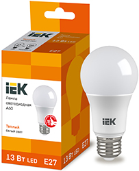 Лампа светодиодная IEK LLE-A60-13-230-30-E27 (A60 стандарт, E27, 13 Вт, 1170 лм), цвет свечения теплый белый