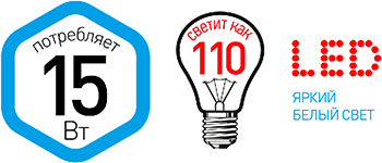 | Мощность эквивалента, Вт | 110 (лампа накаливания) |