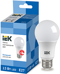 Лампа светодиодная IEK LLE-A60-13-230-65-E27 (A60 стандарт, E27, 13 Вт, 1170 лм), цвет свечения холодный белый
