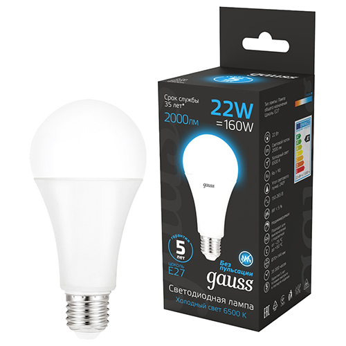 Лампа светодиодная Gauss 102502322 (А70 груша, Е27, 22 Вт, 2000 лм, 6500 К)