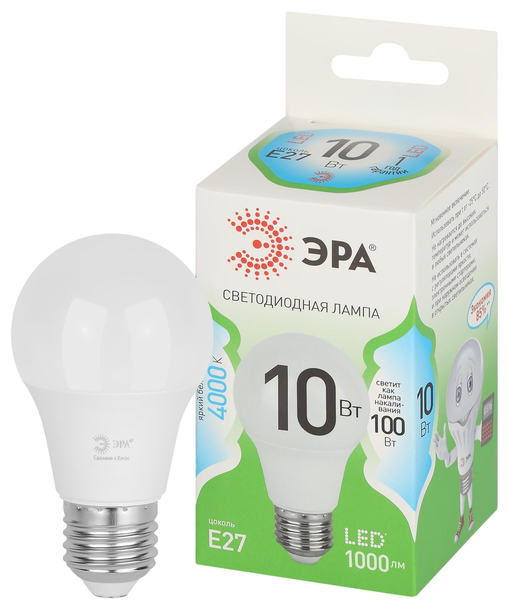 Лампа светодиодная "Эра" ECO LED A60-10W-827-E27 (10 Вт, A60 стандарт, E27, 800 лм), цвет свечения теплый белый