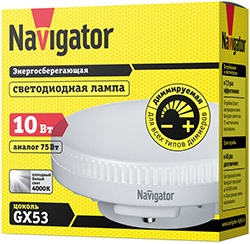 Лампа светодиодная Navigator NLL-GX53-10-230-4K-DIMM (10 Вт, GX53, tablet, 800 лм), диммируемая, цвет свечения нейтральный белый
