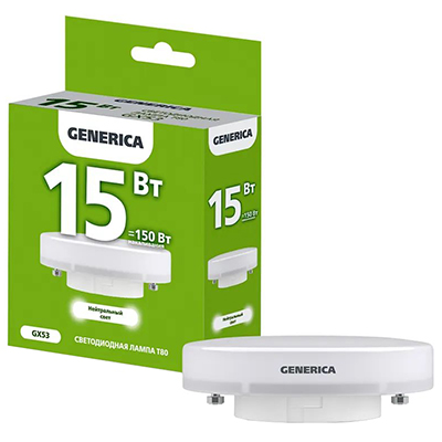 Лампа светодиодная Generica LL-T80-15-230-40-GX53-G (tablet, 220 В, 15 Вт, 1500 лм, 4000 К)