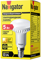 Лампа светодиодная Navigator NLL-R50-5-230-2.7K-E14 (R50 рефлектор, 5 Вт, E14, 375 лм), цвет свечения теплый белый