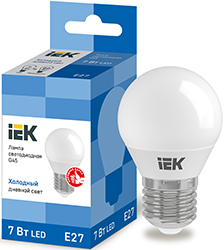 Лампа светодиодная IEK LLE-G45-7-230-65-E27 (G45 шар, E27, 7 Вт, 630 лм), цвет свечения холодный белый