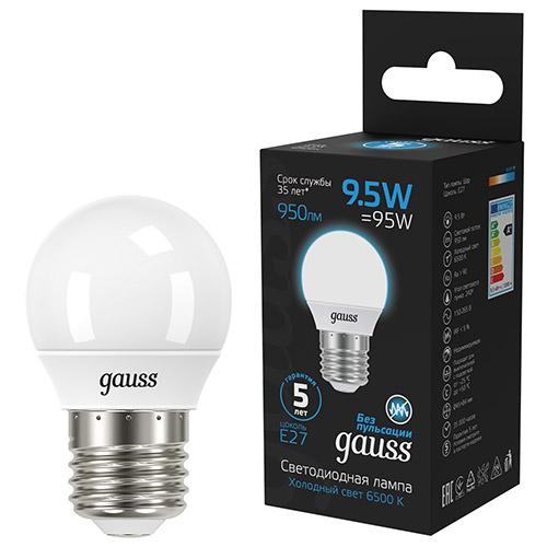Лампа светодиодная Gauss 105102310 (G45 шар, Е27, 9,5 Вт, 950 лм, 6500 К)