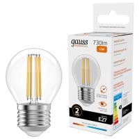 Лампа светодиодная Gauss 52212 Filament Elementary (G45 шар, Е27, 12 Вт, 730 лм, 2700 К, прозрачная колба)