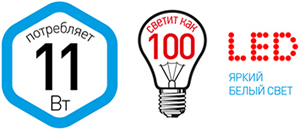 | Мощность эквивалента, Вт | 100 (лампа накаливания) |