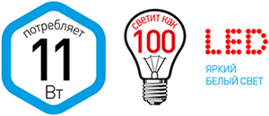 | Мощность эквивалента, Вт | 100 (лампа накаливания) |