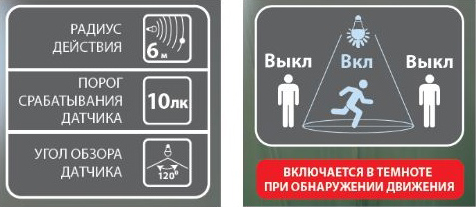 По истечении 20 секунд после удаления движущегося объекта из зоны действия датчика лампа автоматически отключается.