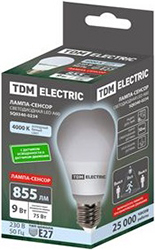 Лампа светодиодная А60-9 Вт-230 В-4000 К-E27 "Сенсор" TDM (A60 стандарт, Е27, 220 В, 9 Вт, 855 лм, 4000 К) с датчиками освещенности и движения