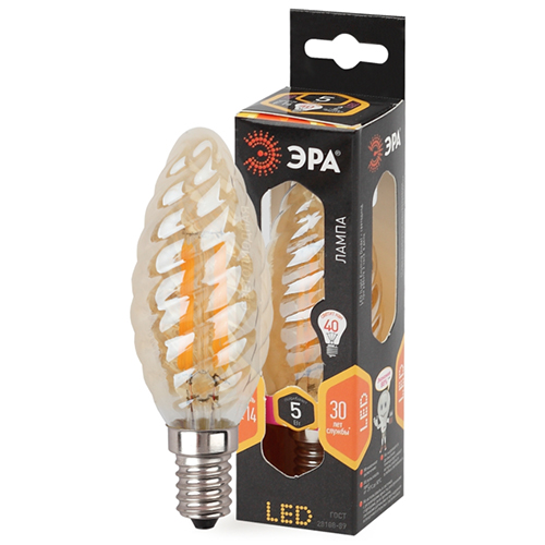 Лампа светодиодная F-LED BTW-5W-827-E14 Gold "Эра" (свеча витая, Е14, 5 Вт, 450 лм, 2700 К, золотистая колба)
