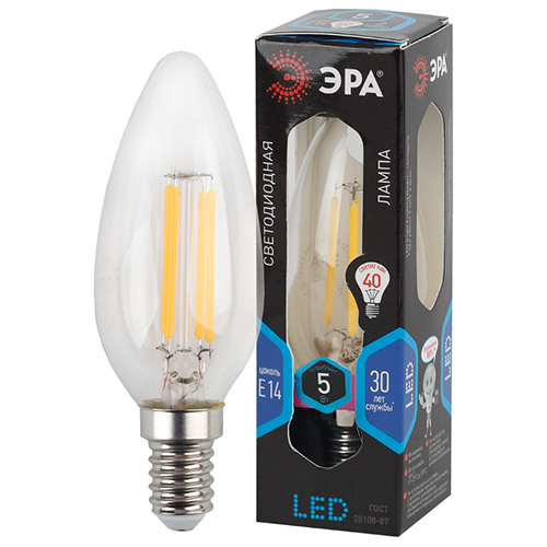 Лампа светодиодная F-LED B35-5W-840-E14 "Эра" (свеча, Е14, 5 Вт, 545 лм, 4000 К)