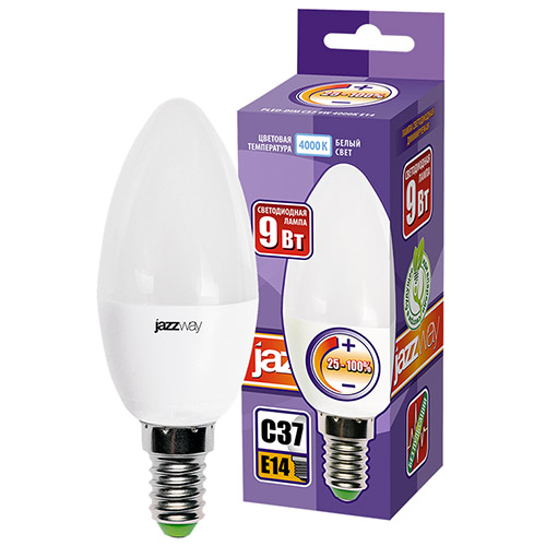 Лампа светодиодная диммируемая Jazzway PLED-DIM C37 9w E14 4000K (свеча, 630 лм)