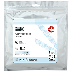 Лента светодиодная IEK LSR-5050W60-14,4-IP65-12В PRO (SMD 5050, 12 В, 14,4 Вт/м, 60 led/м, IP65), цвет свечения холодный белый