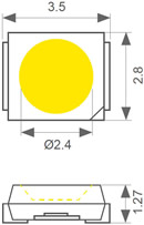 - 3528 - размер светодиода (ЧИП-светодиод 3,5 х 2,8 мм классический).