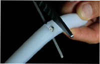 Перемещая ножницы левее или правее, найдите специальное место разреза на плате. Разрежьте ленту строго по обозначенной линии. |