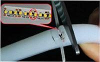 - Разрезать ленту можно только в обозначенных местах, между площадками для пайки.