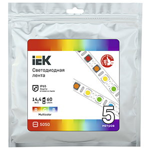 Лента светодиодная IEK LSR-5050RGB60-14,4-IP65-12В PRO (SMD 5050, 12 В, 14,4 Вт/м, 60 led/м, IP65), цвет свечения мультиколор