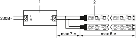 1 - блок питания. 2 - светодиодная лента. |