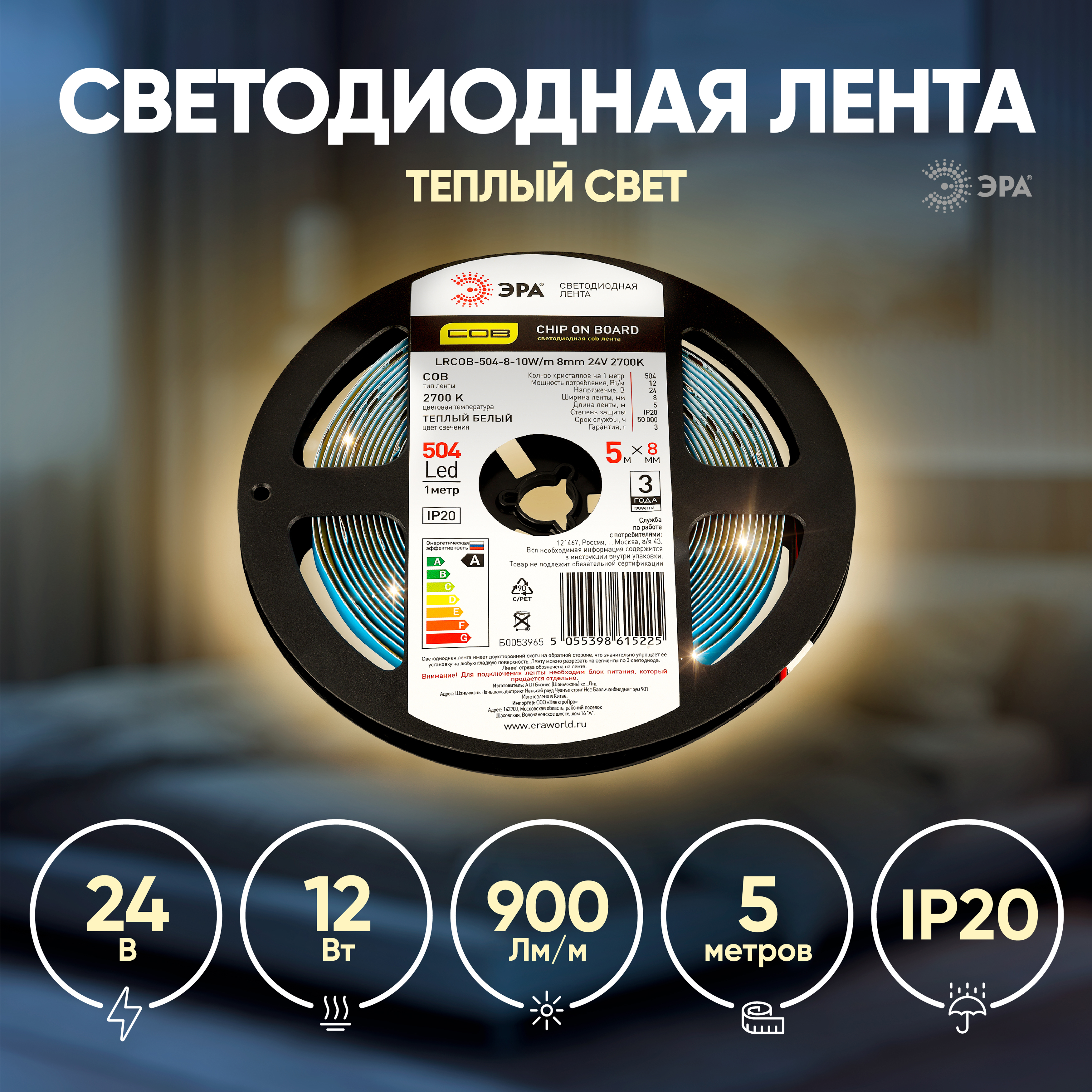 Светодиодная COB лента "Эра" - революция на рынке led лент, так как она воплощает давнее желание клиентов не видеть светодиоды под профилем.