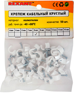 Крепеж кабеля круглый 8 мм Rexant 07-4008, белый, 50 шт.