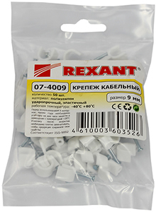 Крепеж кабеля круглый 9 мм Rexant 07-4009, белый, 50 шт.