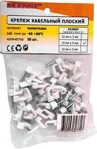 Крепеж кабеля плоский 10 х 4 мм Rexant 07-4210, белый, 50 шт.