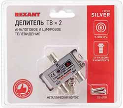 Делитель TV х 2 Rexant 05-6101 (5 - 1000 МГц) + 3 разъема F, серебро