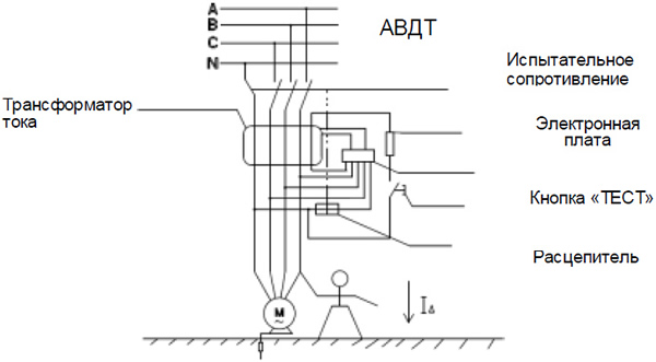 - В конструкцию АВДТ входят автоматический выключатель и дифференциальный блок электронного типа.