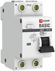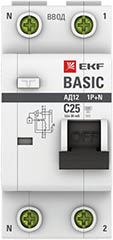 Автоматический выключатель дифференциального тока EKF АД-12 1P+N 25А (C) 30мА 4,5кА Basic (тип АС, 2 модуля)