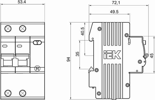 Автоматический выключатель дифференциального тока АД12 2Р 32А 30мА IEK (характеристика расцепления C, 4,5 кА)