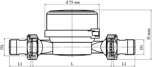 | D1 | D2 | L, мм | L1, мм | Hmax, мм |