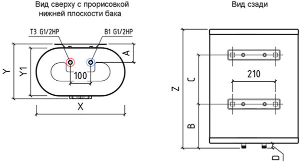 Конструкция с двумя баками экономит до 50 % полезного пространства при установке водонагревателя в глухие ниши.