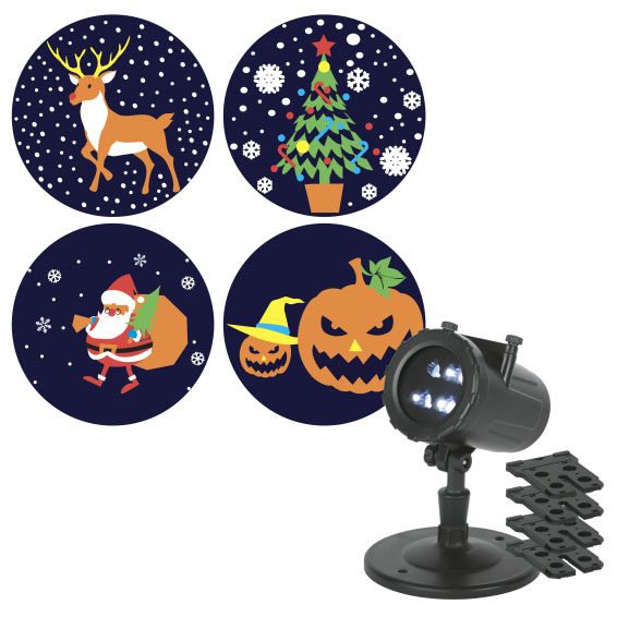 Светодиодный светильник-проектор "Праздник" с 4 картами для проекции предназначен для использования как в помещениях, так и на улице под навесом (IP44).