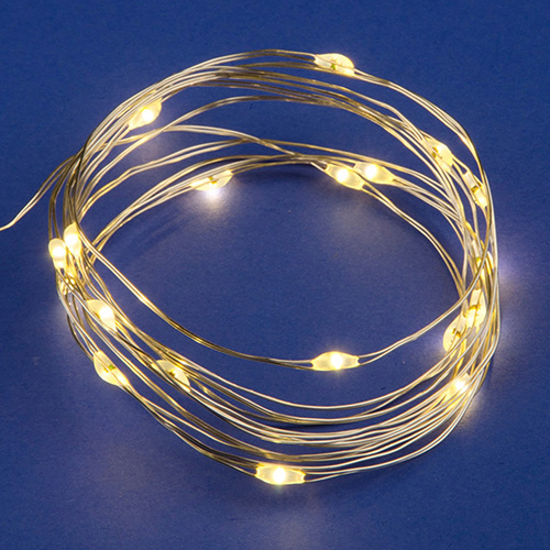 Гирлянда светодиодная нить 2 м Uniel ULD-S0200-020/SCB/2AA Warm White IP20 Dew (роса, 20 led, серебристая проволока, питание 2хАА), цвет свечения теплый белый