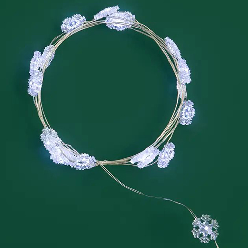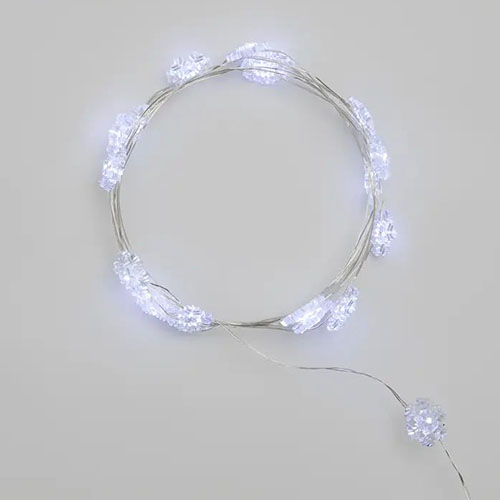 20 ярких белых светодиодов находятся внутри пластиковых насадок, искусно выполненных в виде снежинок.