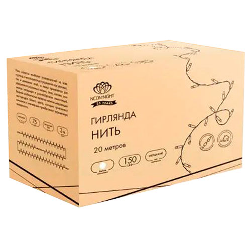 Гирлянда светодиодная нить 20 м Neon-Night 305-565 (150 led, эффект мерцания, соединяемая, прозрачный провод, IP44), цвет свечения белый