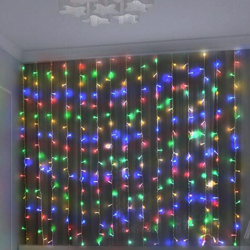 С помощью светового занавеса можно создавать красивые декоративные световые ширмы и композиции, оформлять огнями проемы окон, дверей, арок, украшать перила лестниц и балюстрады.