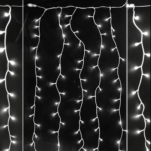 С помощью светового занавеса можно создавать красивые декоративные световые ширмы и композиции, оформлять огнями проемы окон, дверей, арок, украшать перила лестниц и балюстрады.