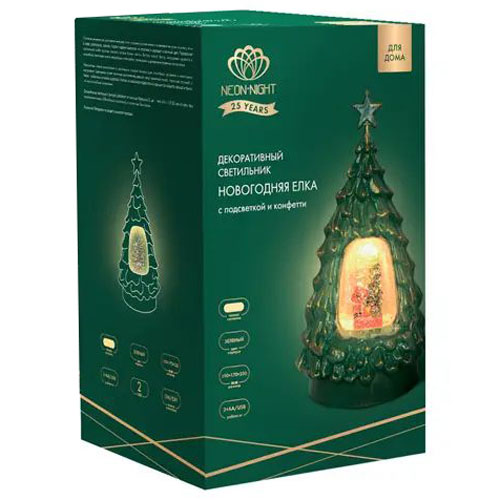 Светильник светодиодный декоративный Neon-Night 501-180 "Новогодняя елка" (2 led, 3 х АА / USB), с конфетти, цвет свечения теплый белый