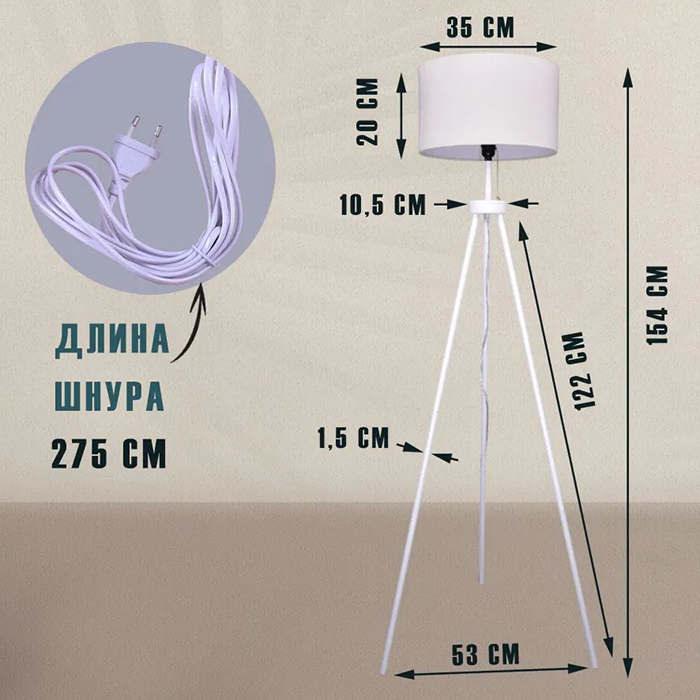 Торшер "Россвет" РС22824/1F (1 х 60 Вт, Е27), белый