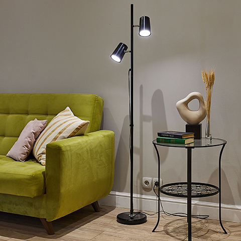 Торшер светодиодный Uniel ULM-T600 2х6W/4500K/DIM Black (12 Вт, 900 лм, диммер), черный
