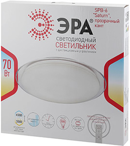 Светильник светодиодный настенно-потолочный "Эра" SPB-6-70-RC Saturn (70 Вт, 5950 лм, диммер, 3000 - 6500 К, IP20, прозрачный кант), круг O570 мм, с пультом ДУ, белый