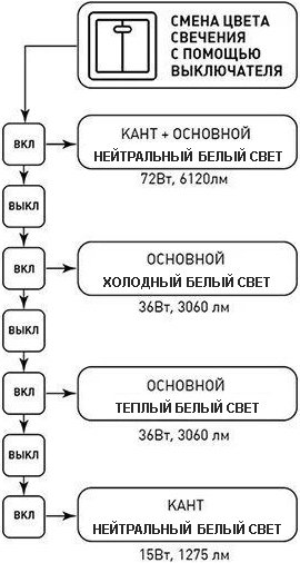 | Световой поток, лм | 1275 (кант) / 3060 (рассеиватель) / 6120 (кант + рассеиватель) |