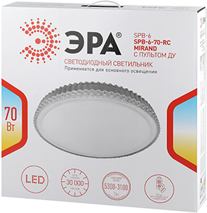 Управляемый светодиодный светильник "Эра" SPB-6-70-RC Mirand предназначен для основного освещения помещений.
