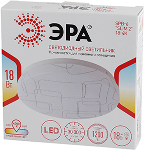 Светильник светодиодный потолочный "Эра" SPB-6-Slim 2 18-4К (18 Вт, 1200 лм, 4000 К, IP20), круг O210 мм, белый
