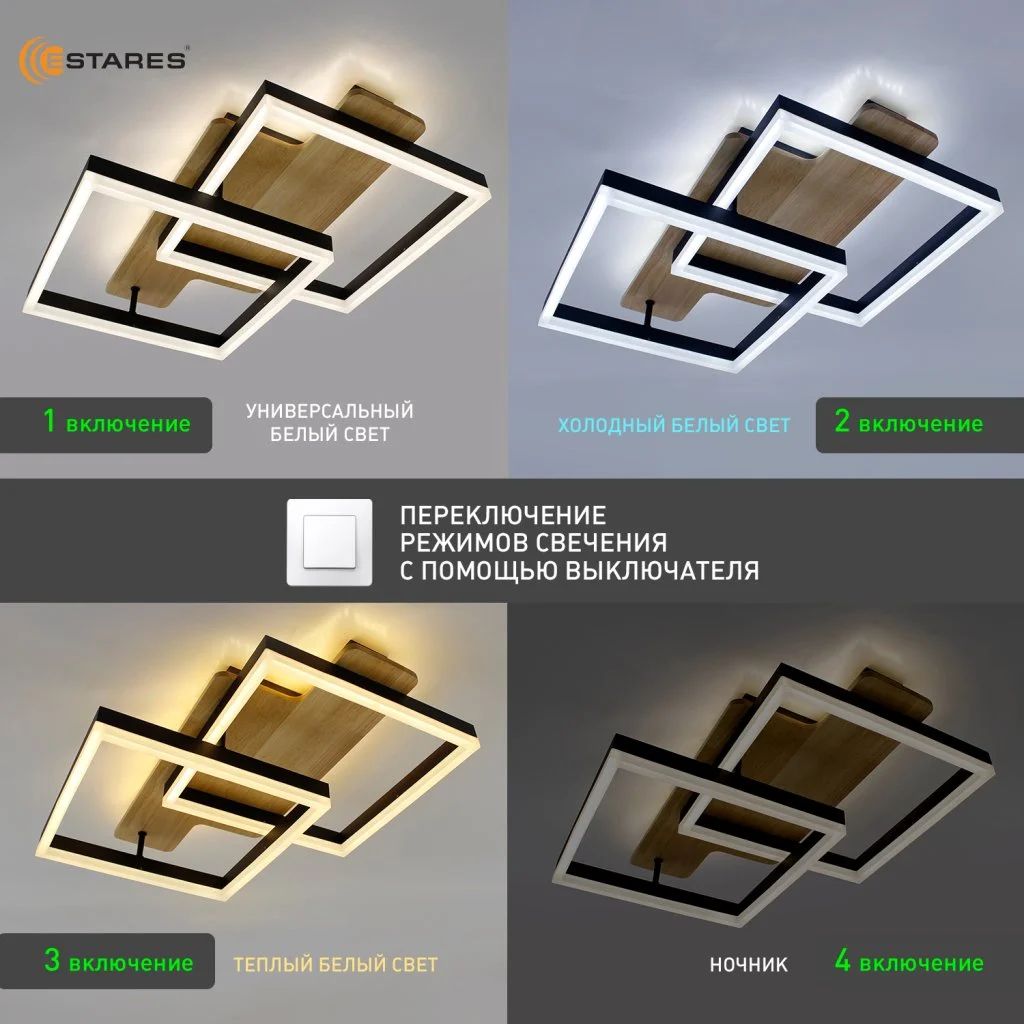 | Режимы цвета свечения, переключаемые с настенного выключателя | Теплый белый / Нейтральный белый / Холодный белый / ночник |