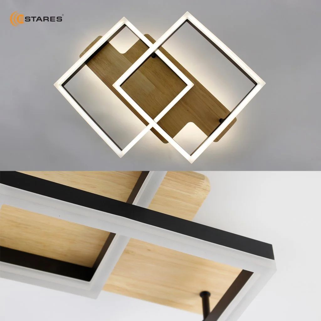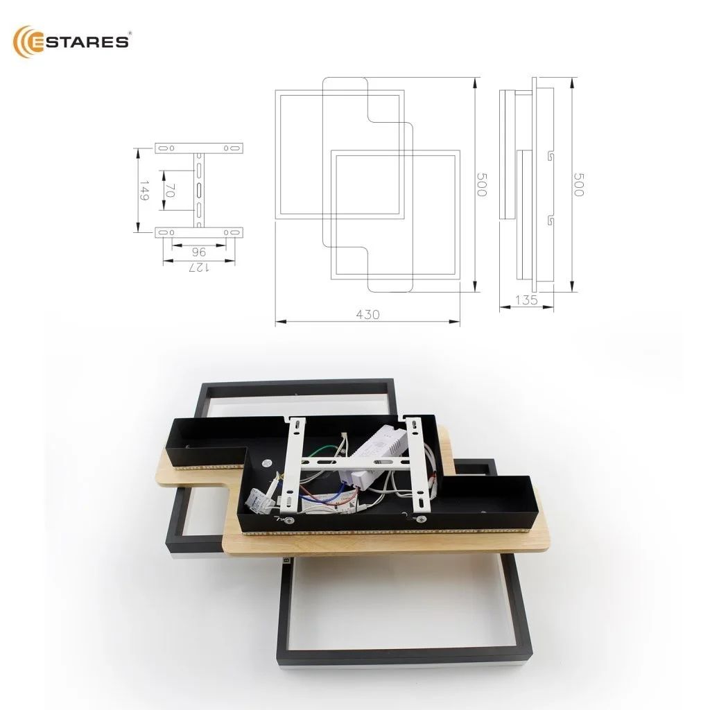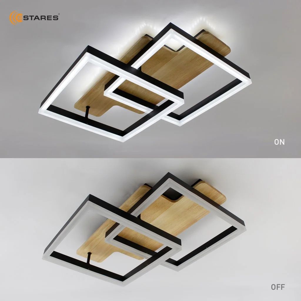 Светильник потолочный светодиодный Woody Loft 85W 2S-APP-500x430x135-Black/Wood-220-IP20 Estares (8500 лм, 3000 - 6500 К, диммер) с подсветкой, с пультом ДУ, черный / светлое дерево